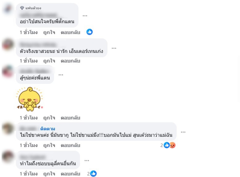ซึ่งทาง ตั๊กแตน เองก็ได้แชร์โพสต์ของเพจ เจ๊มอย108 V1 ไปแบบไม่มีแคปชั่นใดๆเลย และทางแฟนๆก็ได้เข้ามาคอมเมนต์กันเพียบ