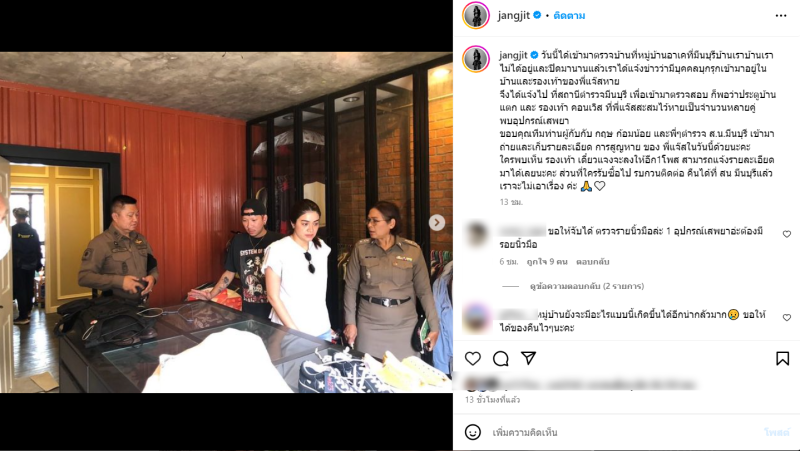 จากกรณีที่ก่อน หน้านั้น แจง ภรรยา แจ๊ส ชวนชื่น ตลกชื่อดัง โพสต์ว่าถูกคนร้ายบุกเข้ามาในบ้านที่ย่านมีนบุรี แล้วเสพยา ก่อนขโมยรองเท้าคอนเวิร์สของสะสมของ แจ๊ส ไปหลายคู่