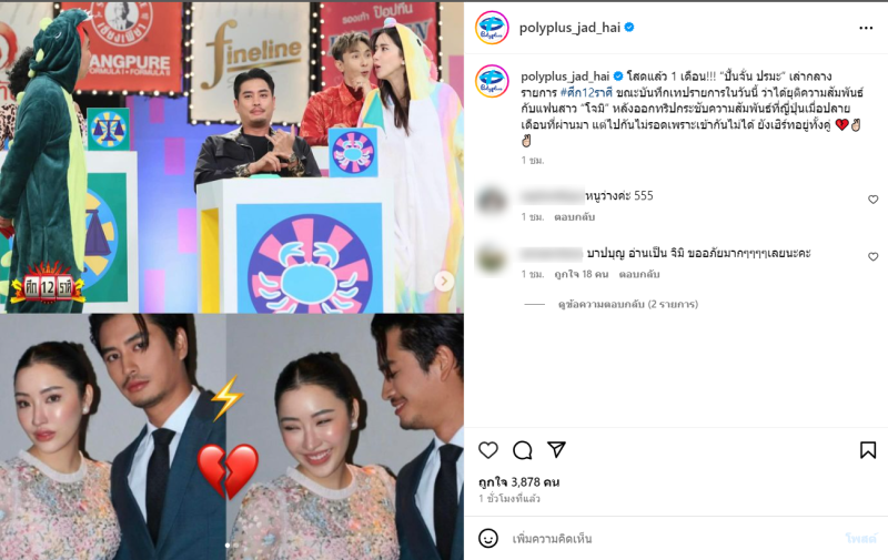 ล่าสุด ในรายการ ศึก 12 ราศี ด้านหนุ่มปั้นจั่น ได้ไปร่วมรายการด้วย ซึ่งทางเพจ polyplus_jad_hai ได้ออกมาเผยว่า ขณะบันทึกเทปรายการในวันนี้ ว่าได้ยุติความสัมพันธ์กับแฟนสาว โจมิ หลังออกทริปกระชับความสัมพันธ์ที่ญี่ปุ่นเมื่อปลายเดือนที่ผ่านมา แต่ไปกันไม่รอดเพราะเข้ากันไม่ได้ ยังเฮิร์ทอยู่ทั้งคู่