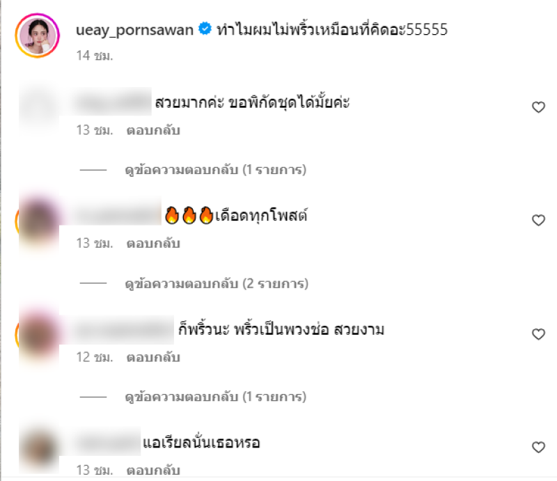 งานนี้ ความแซ่บนั้นแทบทะลุจอ ด้านแฟนหนุ่มรีบเข้ามาคอมเมนต์ และมีเพื่อนๆในวงการและแฟนๆก็เข้ามาเมนต์เช่นกันจำนวนมาก