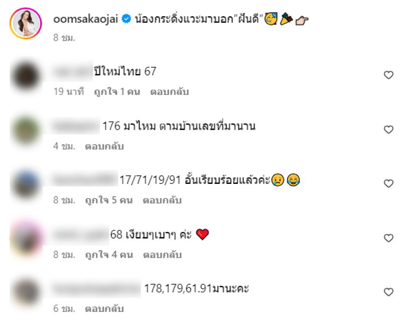 ล่าสุด อ๋อม สกาวใจ ก็ได้กลับมาเปิดเลขให้แฟนคลับได้ติดตามกันเป็นที่เรียบร้อยแล้วกับเลข น้องกระดิ่ง พร้อมกับได้โพสต์ระบุข้อความว่า น้องกระดิ่งแวะมาบอก ฝันดี โดยมีเลข 1-6-8-7 หรือใครจะเห็นเป็นเลขอะไรนั้นลองดูกันเอาเองนะ