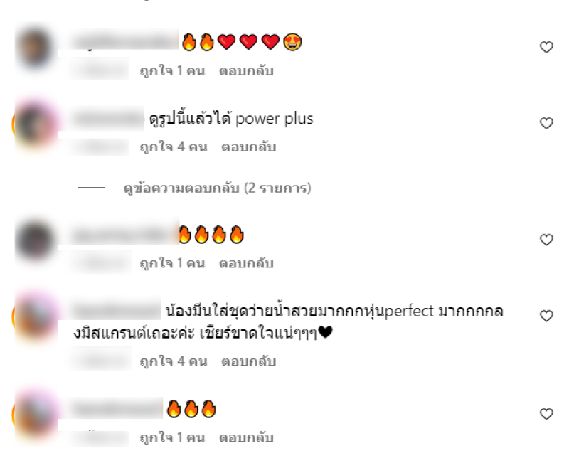ท่ามกลาง เหล่าแฟนๆเข้ามาคอมเมนต์กันจำนวนมาก เช่น สวย แซ่บฝุดๆ,น้องมีนใส่ชุดว่ายน้ำสวยมากกกหุ่นperfect มากกกกลงมิสแกรนต์เถอะค่ะ เชียร์ขาดใจแน่ๆๆๆ,ดูสบายตามากธรรมชาติสุดสุดครับ...(มีนตรา) เป็นต้น