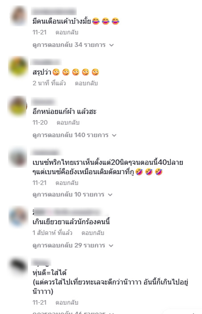 เรียกได้ว่าเป็นอีกหนึ่งหนึ่งนักร้องสาวลูกสองสำหรับ เบนซ์ พริกไทย ที่ต้องบอกเลยว่าทั้งหุ่นเเละเสียงร้องยังคงเป๊ะ จนหลายคนต่างชื่นชม และบอกเลยว่า ชุดที่เบนซ์ใส่ขึ้นร้องเพลงบนเวทีแต่ละชุดทำเอาโซเชียลต่างตาลุก