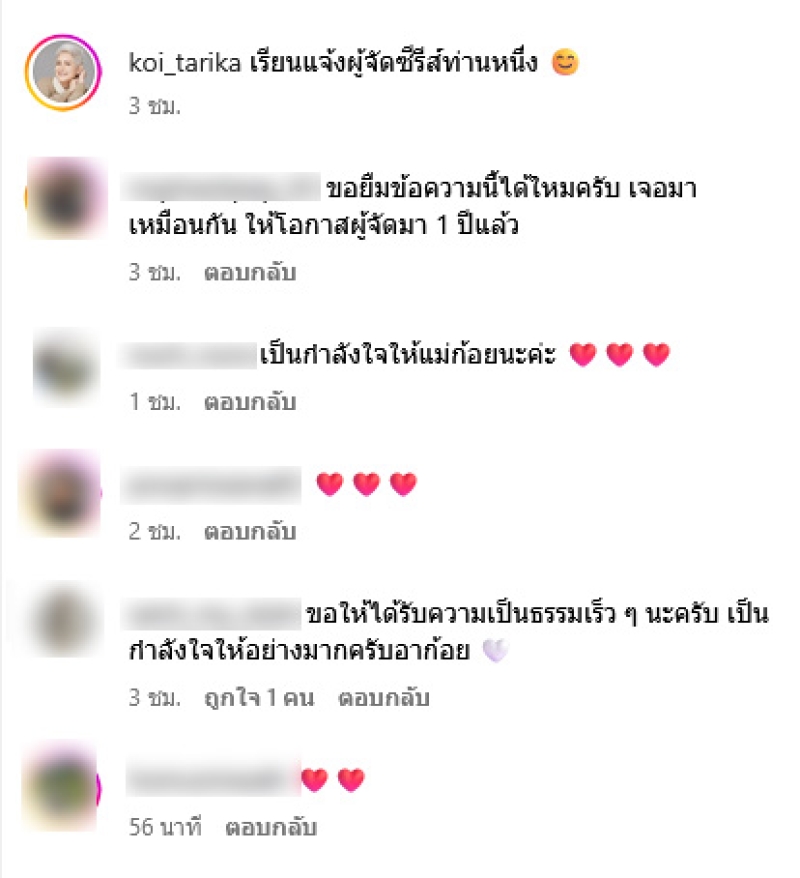 ล่าสุดนักแสดงรุ่นใหญ่ ก้อย ทาริกา ได้ออกมาโพสต์ทวงค่าแรงจากงานแสดงหลังผู้จัดซีรีส์เลื่อนชำระมาหลายเดือนแล้วระบุว่า ก้อยได้รับงานแสดงซีรีส์เรื่องหนึ่ง และถ่ายทำ ตามคิวที่วางไว้ รวมไปถึงซีรีส์เรื่องดังกล่าวมีการ ออกอากาศแล้ว แต่ได้รับค่าตัวในการแสดง ยังไม่ครบตามจำนวนที่ได้ตกลงกันไว้ทั้งหมด
