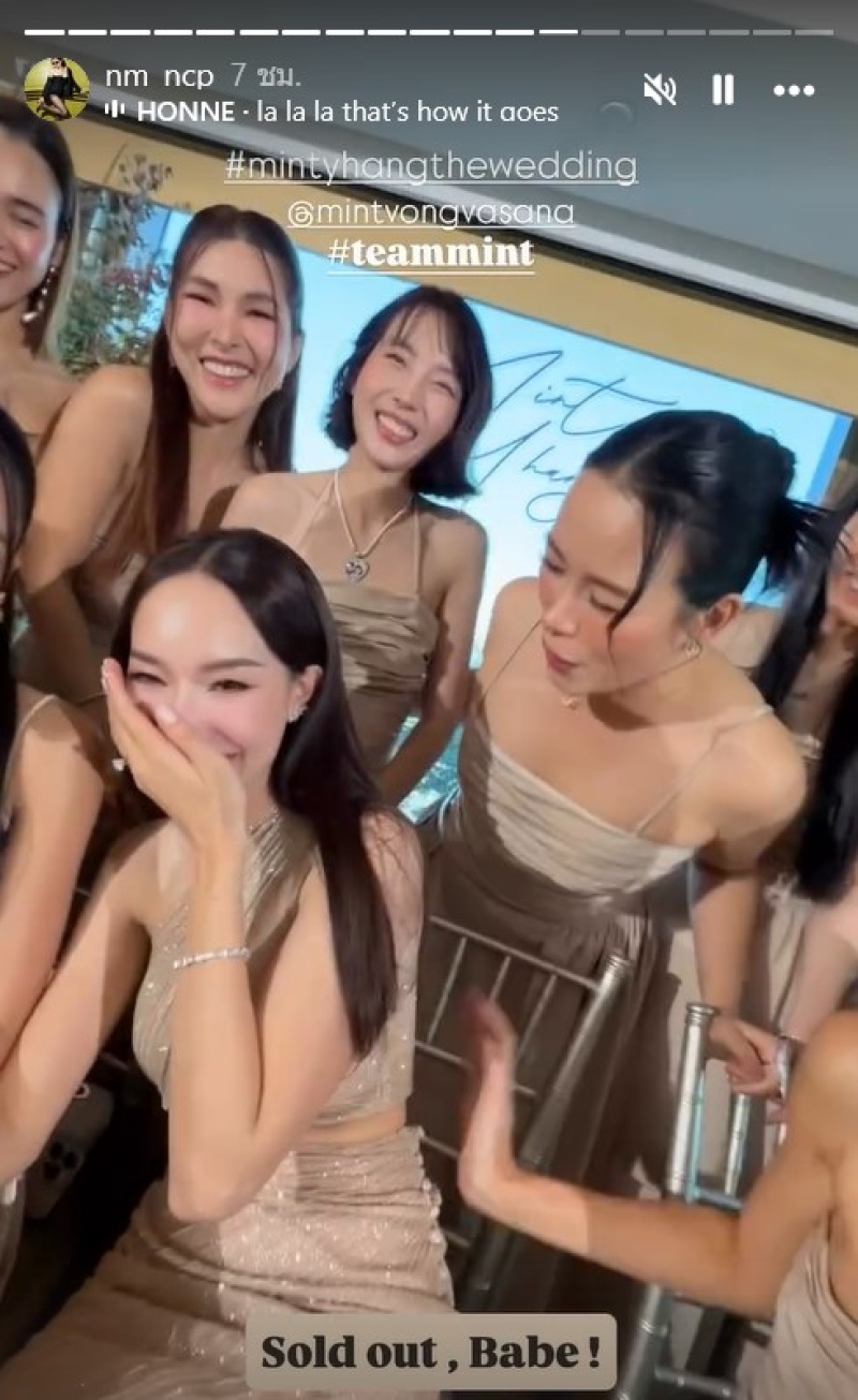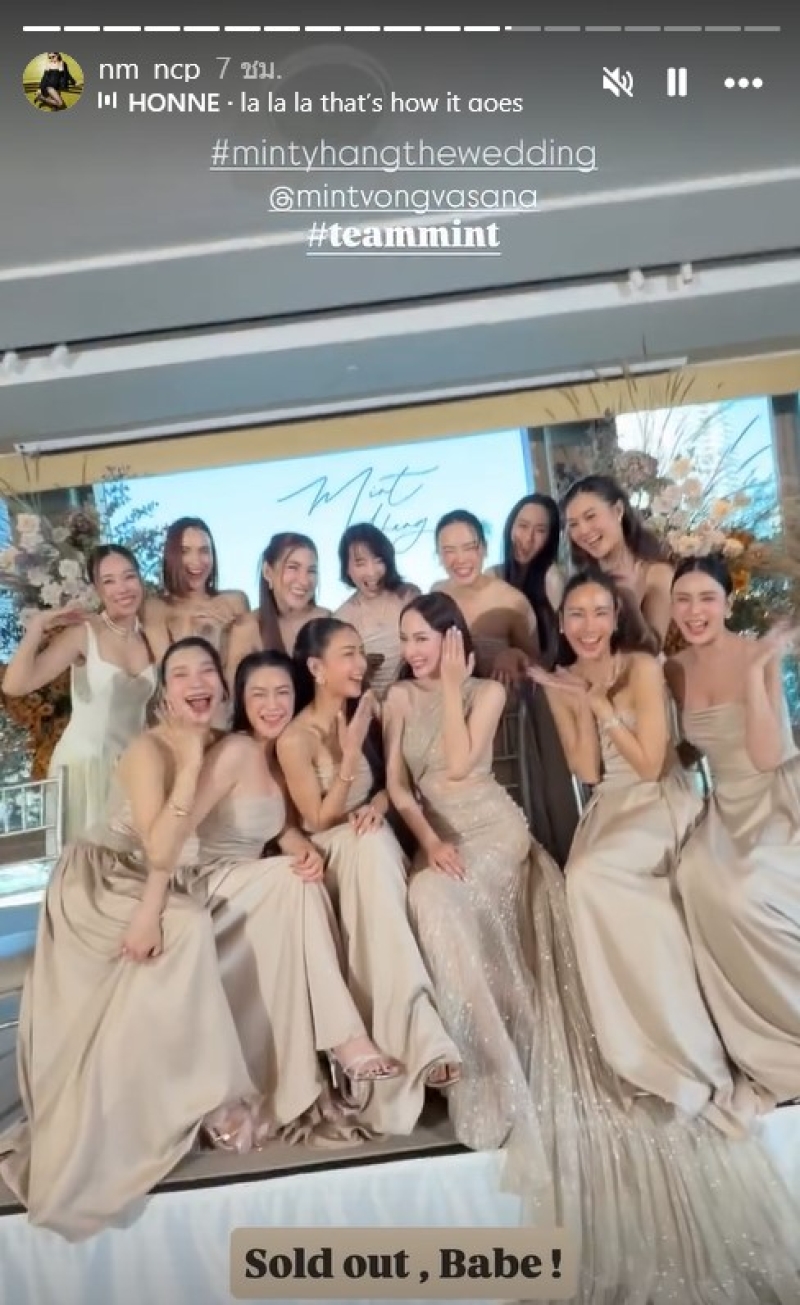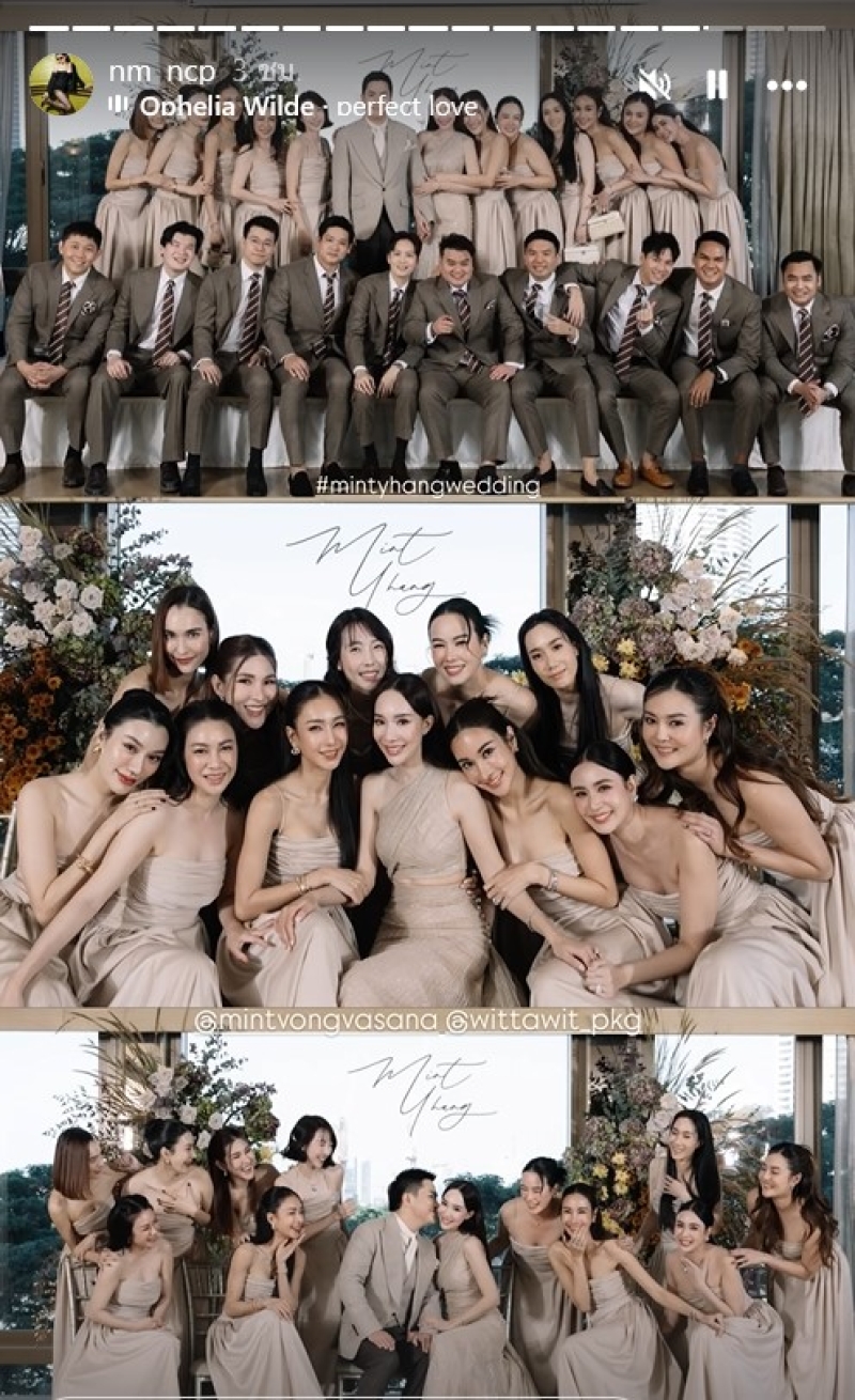 โดย แก๊งเพื่อนเจ้าสาว มาครบทีม ซึ่งเพื่อน มิ้นต์ ณัฐวรา เจ้าสาวคนสวยนั้นก็มีทั้งเพื่อนนอกวงการและในวงการบันเทิง อาทิเช่น หยาดทิพย์ ราชปาล,เนย โชติกา,เบนซ์ ปุณยาพร และอีกหนึ่งคนที่ไม่เห็นมานานอย่าง พลอย อัยดา ภรรยาของ กันต์ กันตถาวร ที่จำแทบไม่ได้เพราะเปลี่ยนลุคตัดผมสั้น ดูใสหน้าเด็กลงมาก จนจำแทบไม่ได้เลยนั้นเอง