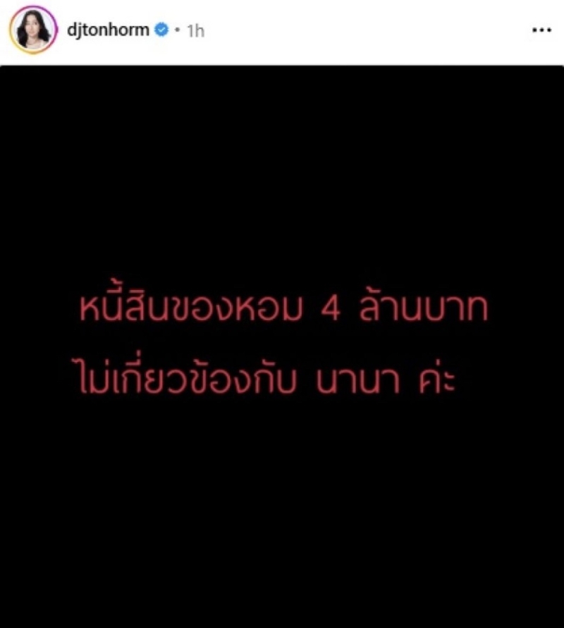 ในโพสต์ชี้แจงของเธอ ต้นหอม บอกชัดเจนว่า ขอไม่พูดถึงประเด็นหนี้สินในเวลานี้ เพราะกังวลเรื่องสุขภาพของคุณพ่อเป็นหลัก ยืนยันว่า ตัวเองยังรับมือได้ ไม่ต้องเป็นห่วง พร้อมส่งพลังบวกให้ทุกคนที่กำลังประสบปัญหาเช่นกัน