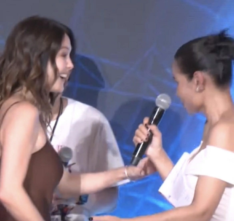 แต่แล้วก็เกิดโมเมนต์เรียกรอยยิ้ม เมื่อ พิธีกร โอปอล์ ปาณิสรา หยิบประเด็นชวนขำขึ้นมาแซว พอลล่า กลางเวที ทำให้ผู้ชมผ่อนคลายบรรยากาศแบบทันตาเห็น