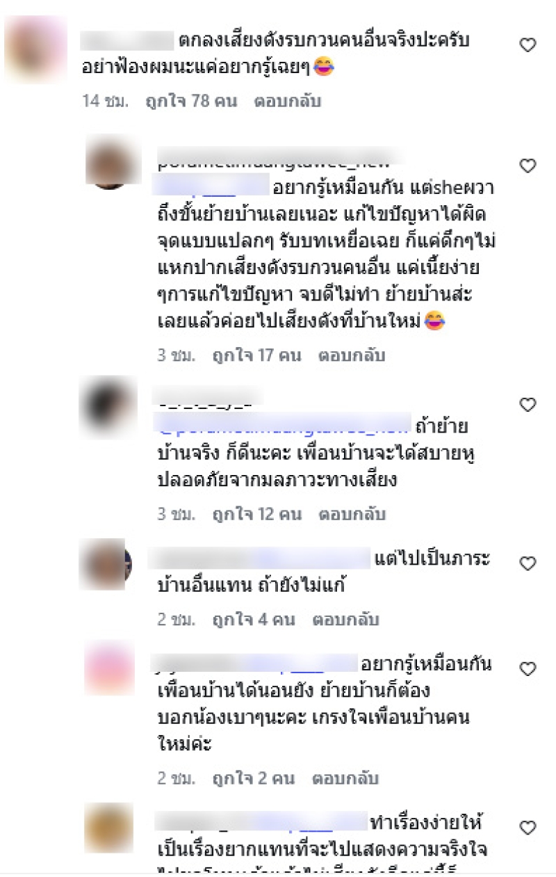 ซึ่งชาวเน็ตหลายคนต่างสงสัยเเละโฟกัสเรื่องเสียงรบกวนเพื่อนบ้านจริงหรือไม่คงต้องรอเจ้าตัวออกมาอธิบายอย่างชัดเจน