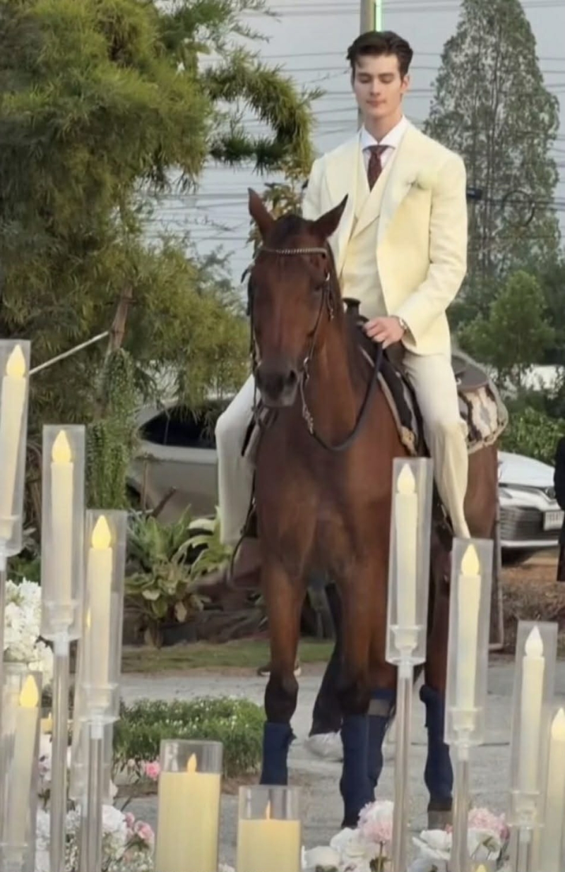 ช่วงที่เรียกเสียงฮือฮาที่สุด คือ การปรากฏตัวของเจ้าบ่าว ที่มาเหนือความคาดหมาย เมื่อรุสลัน เลือกเปิดตัวอย่างโดดเด่น สะกดทุกสายตาภายในงานทันที