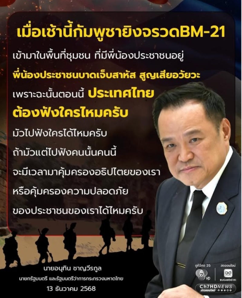 เรียกได้ว่า เป็นนักแสดงรุ่นใหญ่ อย่าง ท็อป ดารณีนุช ที่ได้ออกมาโพสต์เกี่ยวกับ อนุทิน โดยในภาพนั้น ทางอนุทินได้พูดว่า เมื่อเช้านี้กัมพูชายิงจรวดBM-21 เข้ามาในพื้นที่ชุมชน ที่มีพี่น้องประชาชนอยู่ พี่น้องประชาชนบาดเจ็บสาหัส สูญเสียอวัยวะ เพราะฉะนั้นตอนนี้ ประเทศไทย ต้องฟังใครไหมครับ มัวไปฟังใครได้ไหมครับ ถ้ามัวแต่ไปฟังคนนั้นคนนี้ จะมีเวลามาคุ้มครองอธิปไตยของเรา หรือคุ้มครองความปลอดภัย ของประชาชนของเราได้ไหมครับ