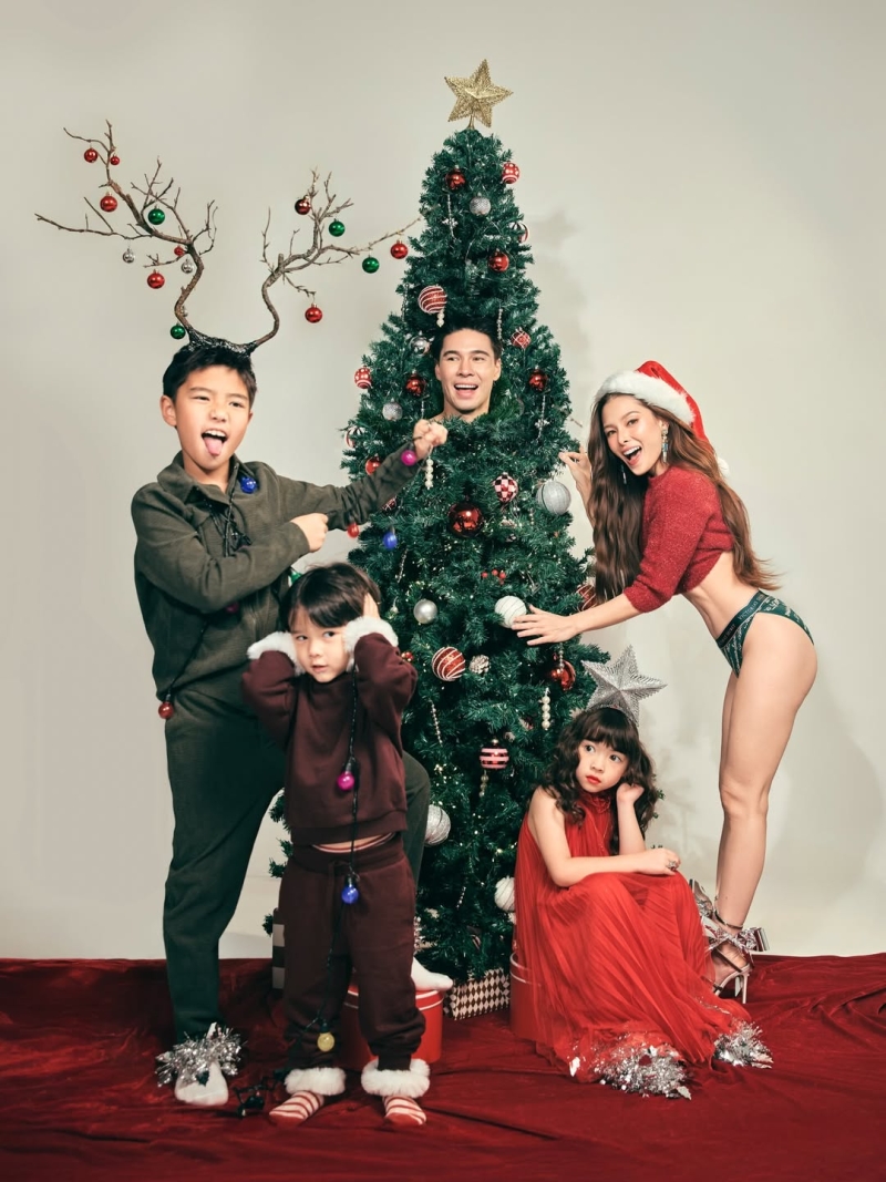 ปีนี้จัดคอนเทนต์คริสต์มาสสุดครีเอท พร้อมลูก ๆ ทั้งสามคน ไฮไลต์อยู่ที่คุณพ่อแมทธิวที่ยอมแปลงร่างเป็นต้นคริสต์มาสขนาดยักษ์ ส่วนคุณแม่ลิเดียมาในลุคซานตี้สดใส ขณะที่ลูก ๆ ก็ร่วมเฟรมอย่างคึกคัก