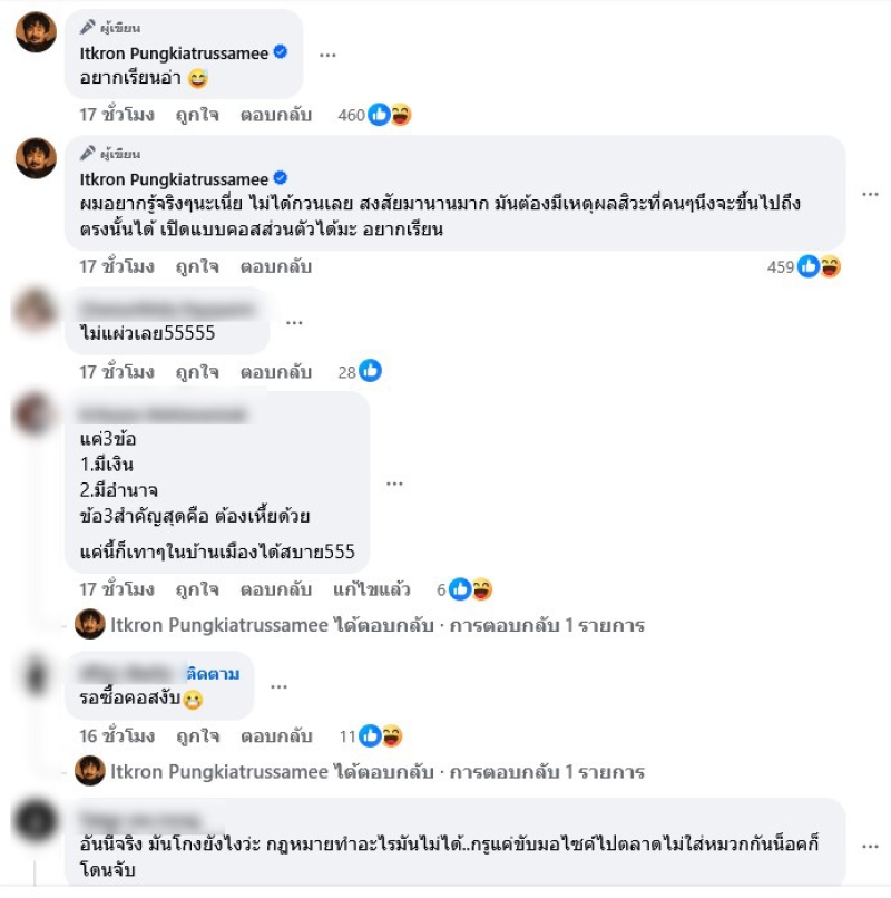 งานนี้ทำเอาชาวเน็ตแห่เข้ามาคอมเมนต์เพียบ เช่น อันนี้จริง มันโกงยังไงว่ะ กฎหมายทำอะไรมันไม่ได้..กรูแค่ขับมอไซค์ไปตลาดไม่ใส่หมวกกันน็อคก็โดนจับ,สีเทาเหล่านี้เทาโดยตัวเองแล้วแบคเขายังดีด้วยเลยลอยหน้าลอยตาในสังคมสบาย,แค่พูดว่า "กระผมขอเปิดงานฯ" ในพิธีปิดการแข่งขันก็เริ่มใช้ได้แล้ว,เอ่ออันนี้จริง! โกงยังไง กฎหมายถึงทำอะไรมันไม่ได้..คนธรรมดาแค่ขับรถเหยียบเส้นก็โดนจับแล้ว55555+ เป็นต้น