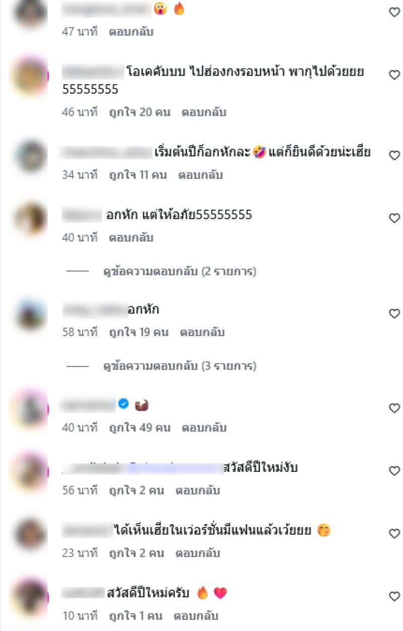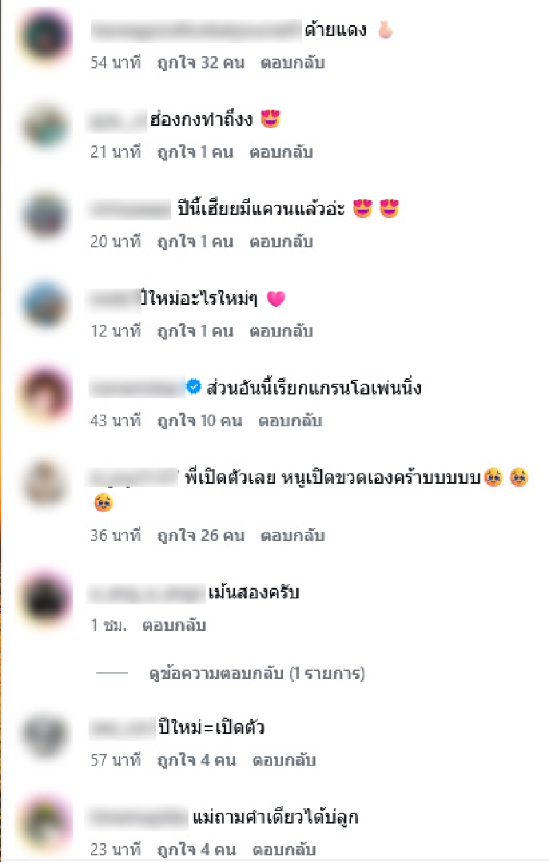 ท่ามกลางแฟนๆเเละคนในวงการต่างเข้ามาคอมเมนต์แซวกันอย่างมาก อาทิ มีนาจองเลยมั้ยอะๆๆ,น่ารักนะคับ อุอุอิอิ,ฉันมายินดีให้กับรักที่สดใส,วิ้ววววๆๆๆ,ด้ายแดงทำงานเร็วมากค่า,เริ่มต้นปีก็อกหักละแต่ก็ยินดีด้วยน่ะเฮีย,อกหัก แต่ให้อภัย55555555