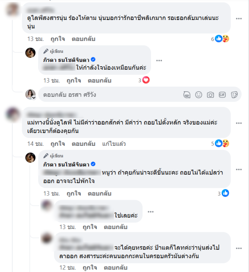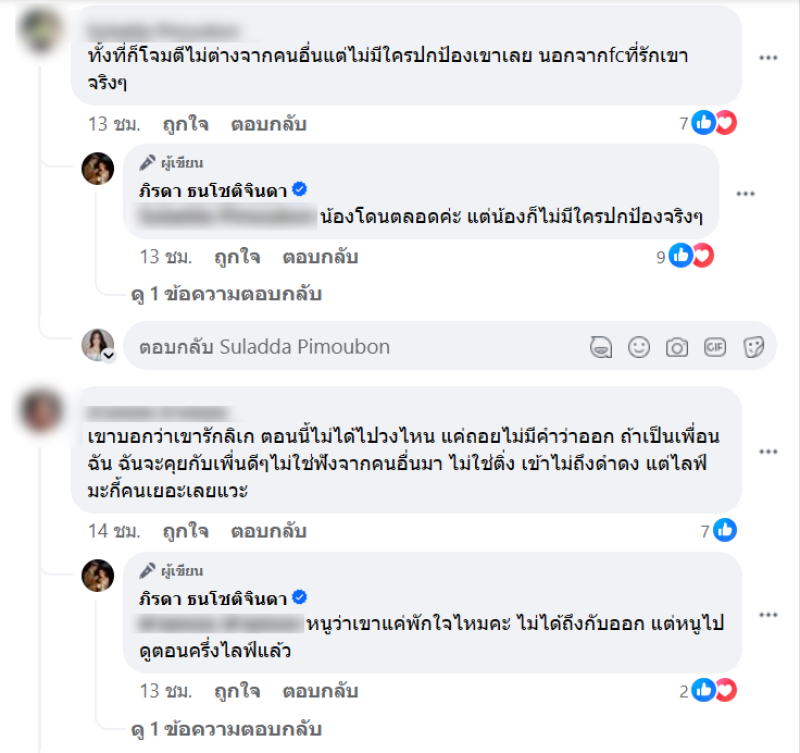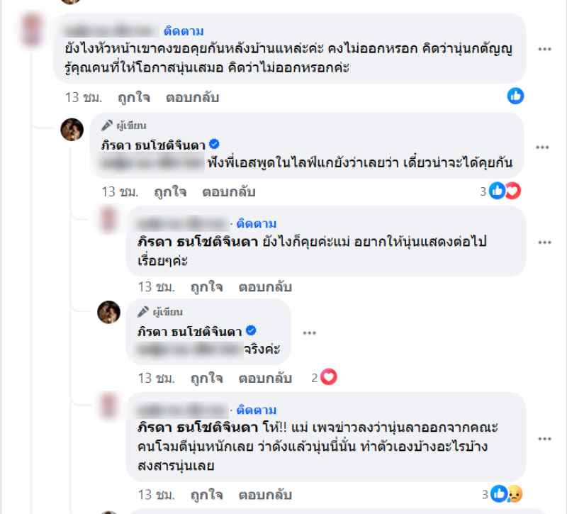 -หนูว่าเขาแค่พักใจไหมคะ ไม่ได้ถึงกับออก แต่หนูไปดูตอนครึ่งไลฟ์แล้ว