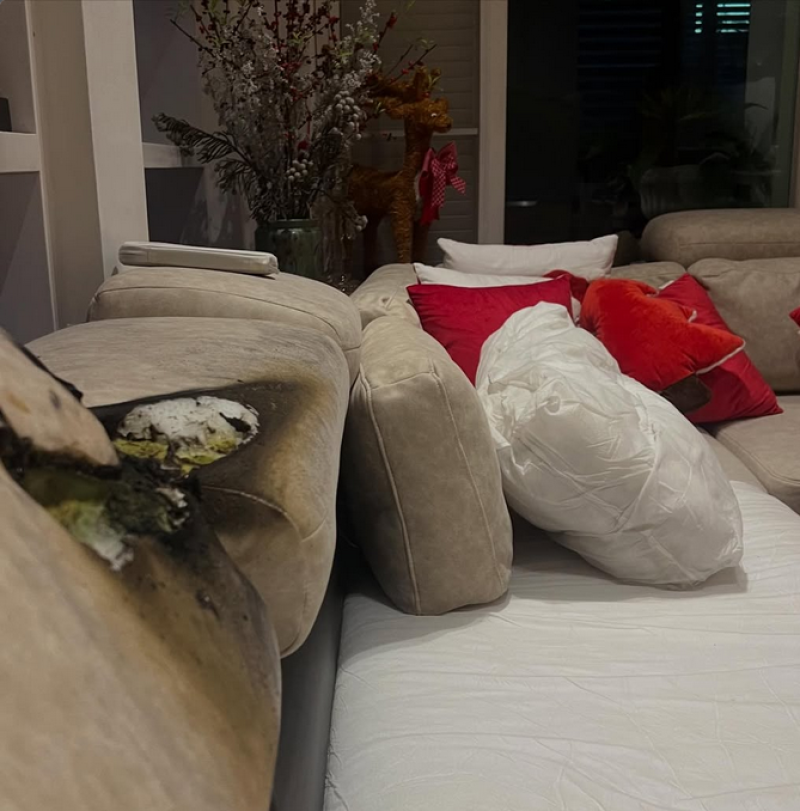 หรือสิ่งห้ามใดๆ ที่เห็นในภาพ คือแบตเตอรี่ สำรองของหลานชาย ไม่ใช่ยี่ห้อไก่กา แต่คงใช้มานานแล้ว เราไม่สามารถรู้ได้ว่าเครื่องเสื่อมหรือชำรุดใดๆ เสียบชาร์จ ในบ้าน ระเบิด ไฟลุกใน 3-5 วิ เลยติด โซฟา หนัง ไหม้แบบเร็วมาก ไม่อยากจะนึก ว่าถ้าชาร์จทิ้งตอนหลับกันหมดแล้ว