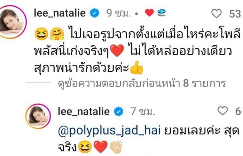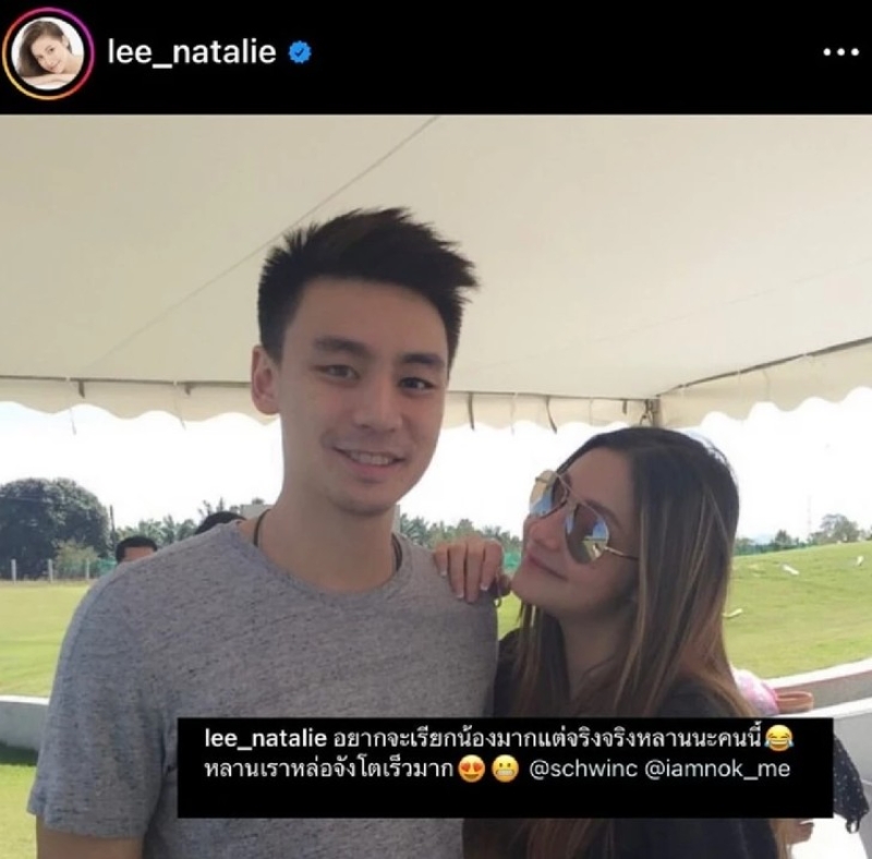 พร้อมได้เขียนแคปชั่นระบุไว้ว่า "อยากจะเรียกน้องมาก แต่จริงจริงหลานนะคนนี้ หลานเราหล่อจังโตเร็วมาก @schwinc @iamnok_me" และนอกจากนี้ นาตาลี ได้เข้ามาคอมเมนต์อีกว่า "ไปเจอรูปจากตั้งแต่เมื่อไหร่คะโพลีพลัสนี่เก่งจริงๆ ไม่ได้หล่ออย่างเดียวสุภาพน่ารักด้วยค่ะ