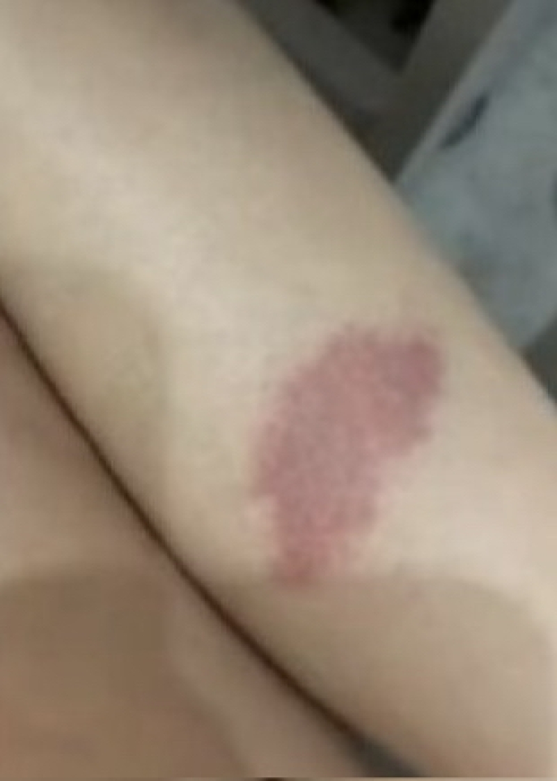 ในช่วงแรกอาการดูเหมือนไม่รุนแรง เธอ ใช้ยาทั่วไป และไม่มีอาการคัน หรือ บวม แต่หลังผ่านไปไม่กี่วัน แผลเริ่มแสดงอาการชัด ทั้งคัน บวม และเปลี่ยนสีเป็นรอยช้ำ จนสร้างความกังวลไม่น้อย