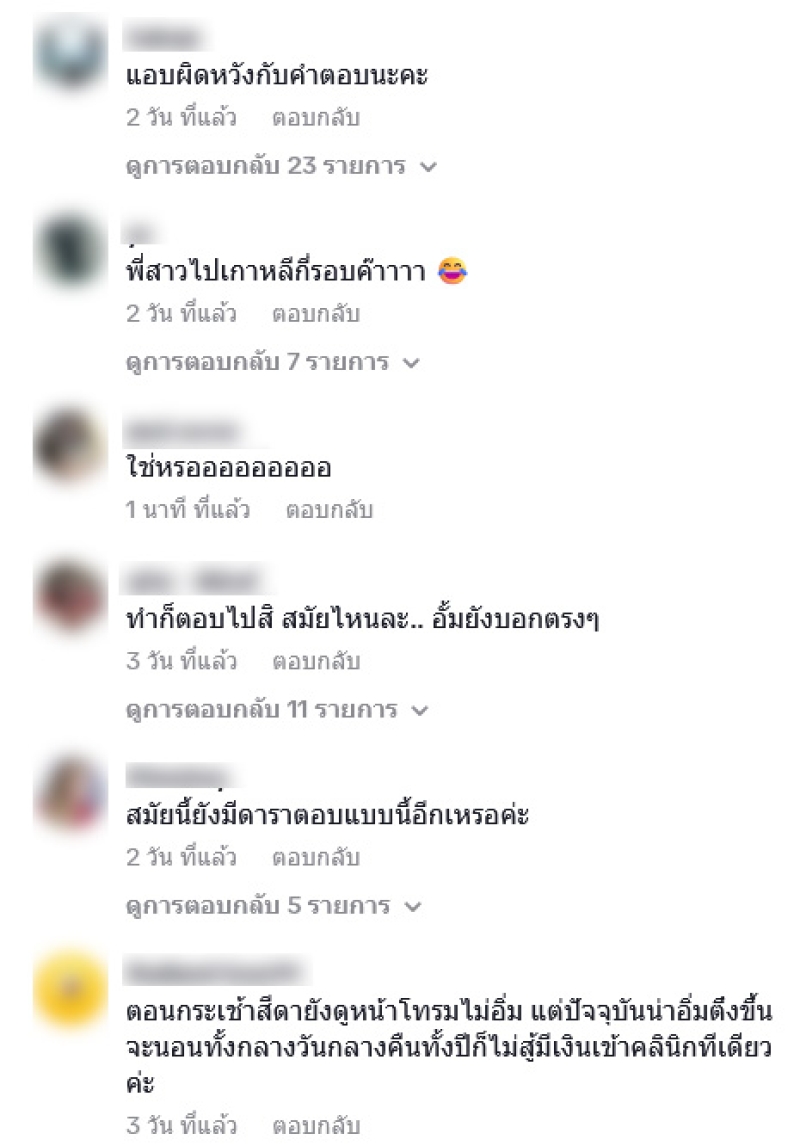 ซึ่งหลังจากที่บทสัมภาษณ์ได้เผยแพร่ออกไปชาวเน็ตต่างเข้ามาคอมเมนต์เชิงดราม่าว่า แอบผิดหวังกับคำตอบนะคะ,พี่สาวไปเกาหลีกี่รอบค๊า,ใช่หรอ,สมัยนี้ยังมีดาราตอบแบบนี้อีกเหรอคะ,เคล็ดลับคือไปเกาหลี,คำตอบดาราก็คือดารา