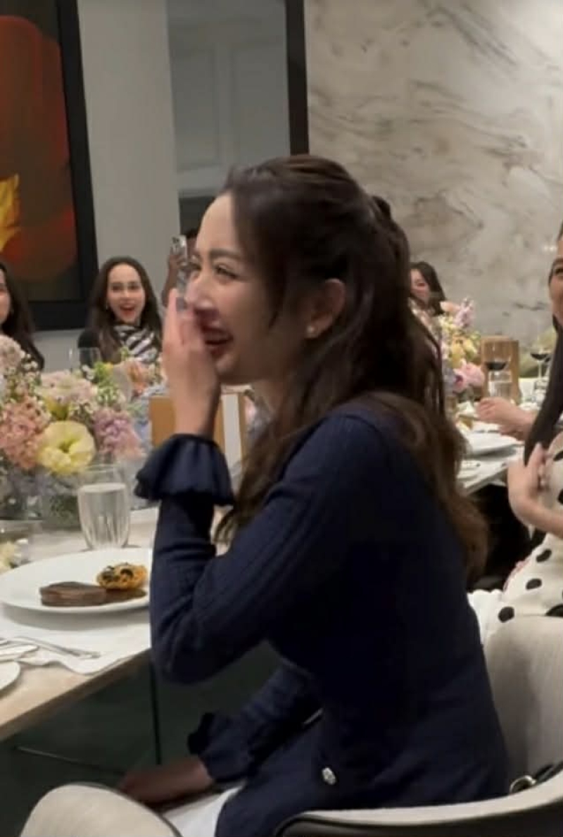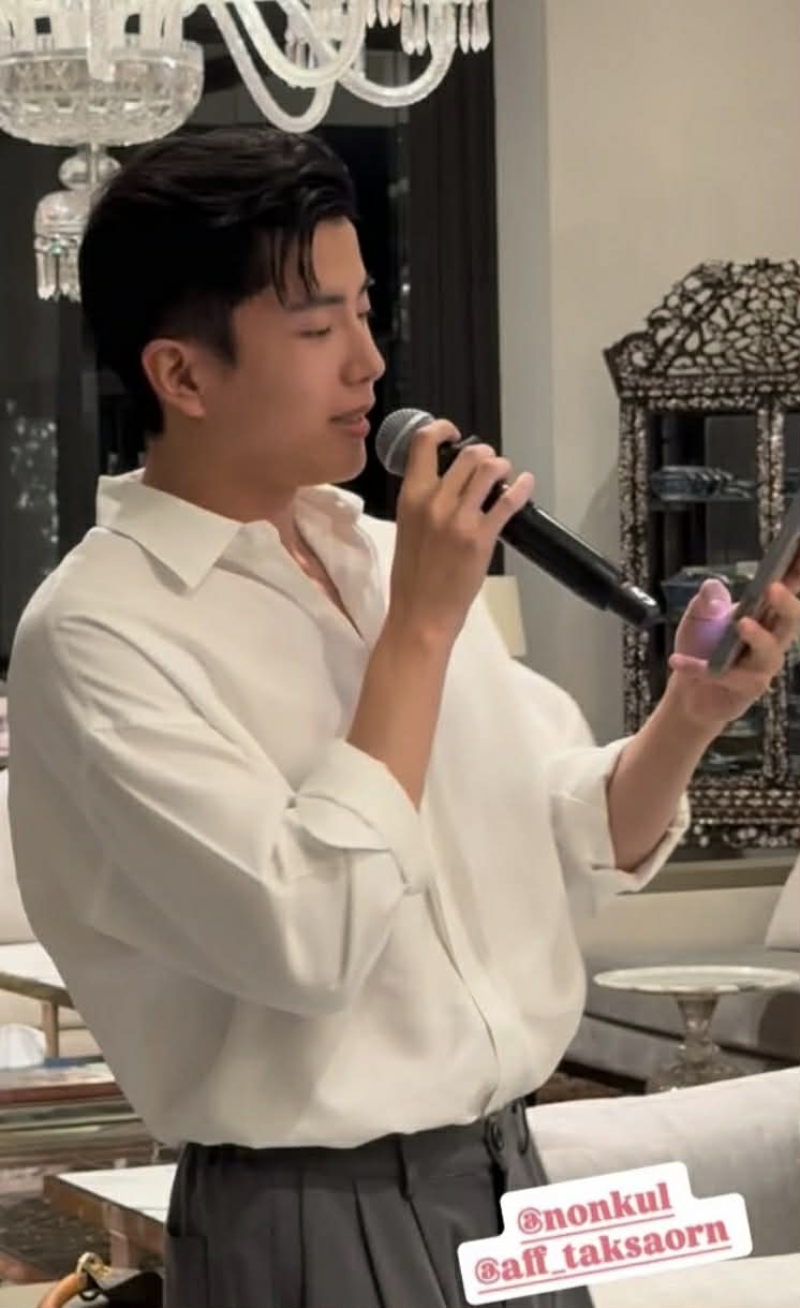 ยิ่งเมื่อท่อนเนื้อเพลงหวานๆ ถูกถ่ายทอดออกมา บรรยากาศในงานก็ยิ่งคึก เสียงแซว และเสียงเชียร์ดังขึ้นรอบโต๊ะ ขณะที่ แอฟ ออกอาการเขินแบบเห็นได้ชัด กลายเป็นโมเมนต์ที่ถูกพูดถึงมากที่สุดของค่ำคืนนั้น