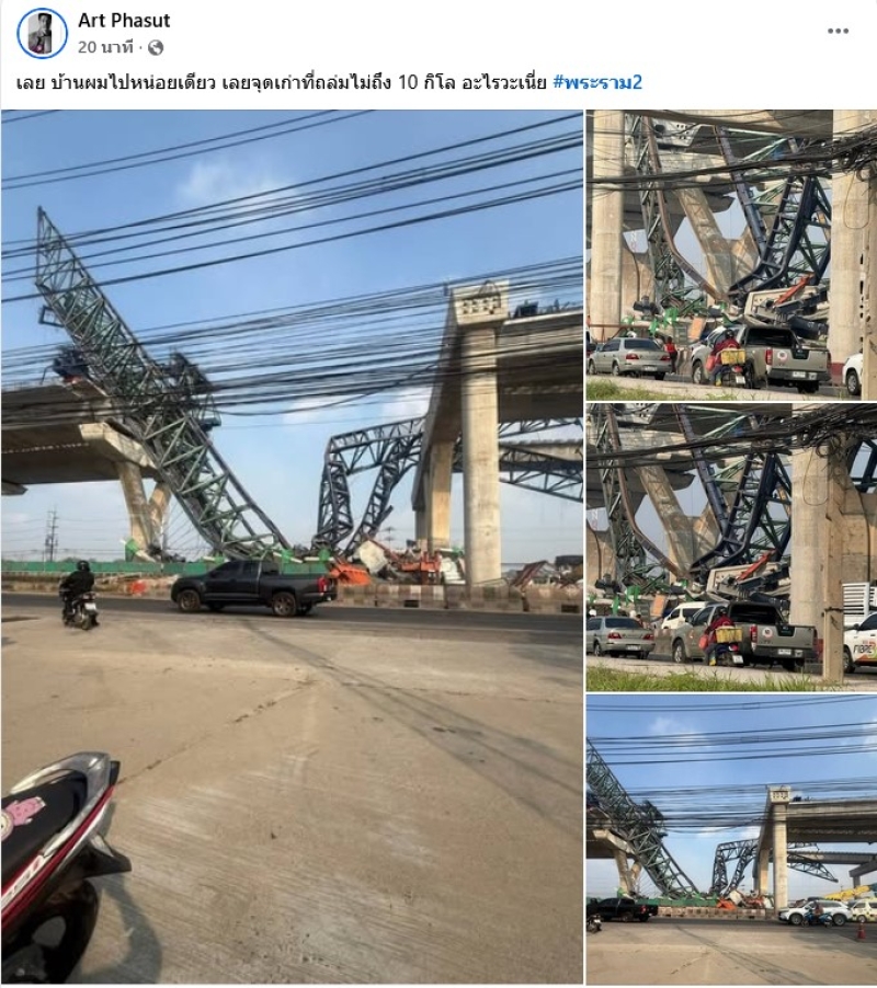 ล่าสุดทาง ดาราหนุ่ม อย่าง อาร์ต พศุตม์ ได้ออกมาโพสต์ว่า เลย บ้านผมไปหน่อยเดียว เลยจุดเก่าที่ถล่มไม่ถึง 10 กิโล อะไรวะเนี่ย #พระราม2 ชาวเน็ตเข้ามาคอมเมนต์กันเพียบ
