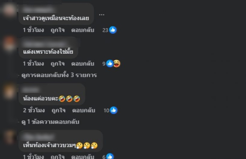แต่ก็มิวายเจอชาวเน็ตคอมเมนต์จับผิดกันอย่างมาก เจ้าสาวดูเหมือนจะท้องเลย,แต่งเพราะท้องใช่มั้ย,เห็นท้องเจ้าสาวบวมๆ, มีน้องเหรอท้องโตมากยินดีด้วยนะค่ะ