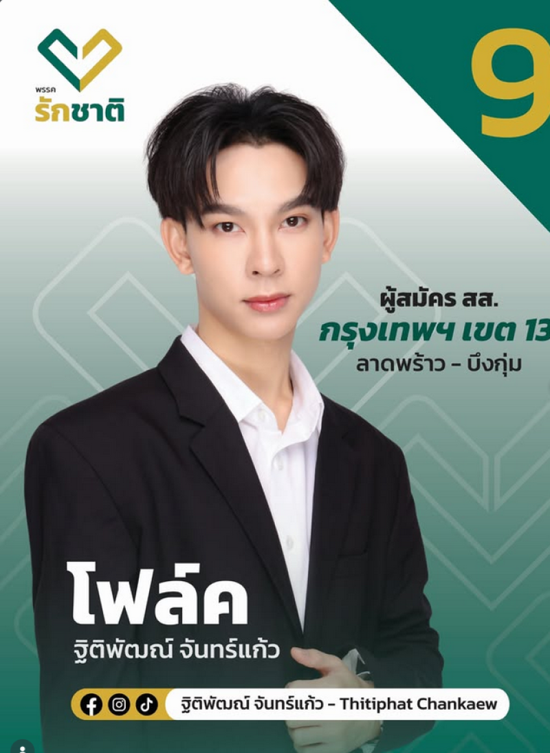เป็นที่ฮือฮาของแฟนๆกันอย่างมากสำหรับ โฟล์ค ฐิติพัฒน์ จันทร์แก้ว อดีตคู่จิ้นชื่อดังที่หลายคนคุ้นหน้าจาก ซีรีส์ TOSSARA หลังตัดสินใจก้าวสู่เส้นทางการเมืองอย่างจริงจัง ด้วยการลงสมัครรับเลือกตั้งสมาชิกสภาผู้แทนราษฎร (สส.)