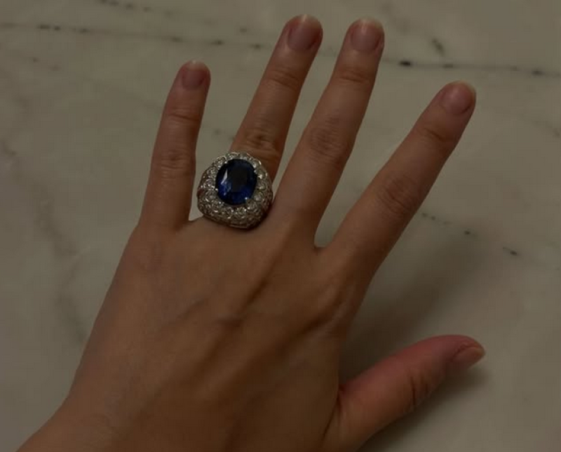 Ok so when I say princess treatment, I mean Princess Diana. I just keep winning at life. พร้อมทั้งลงภาพแหวนเพชรเทียบดีไซน์กับแหวนในตำนานของเจ้าหญิงไดอาน่าแหวนที่โด่งดังในประวัติศาสตร์ราชวงศ์อังกฤษเลยทีเดียว
