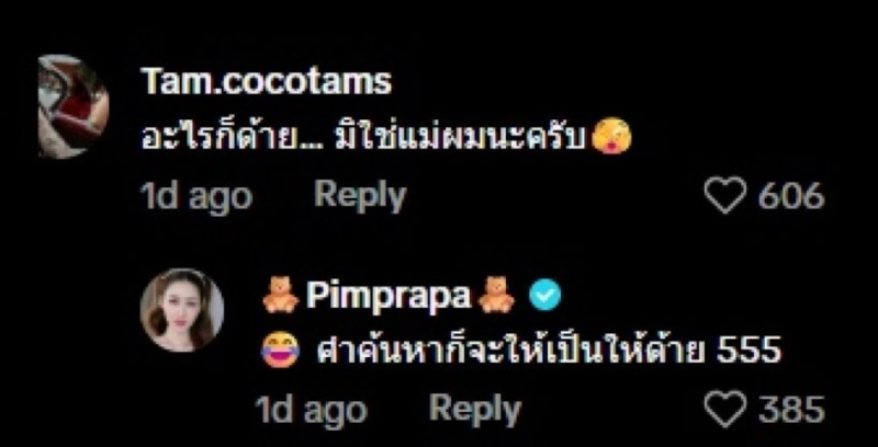 ล่าสุด บอกเลยว่า ตัดชื่อคู่นี้ไปได้เลย เมื่อไฮโซแทม มาคอมเมนต์ในคลิปว่า อะไรก็ด้าย... มิใช่แม่ผมนะครับ ด้านสาวพิม คอมเมนต์ต่อว่า คำค้นหาก็จะให้เป็นให้ด้าย