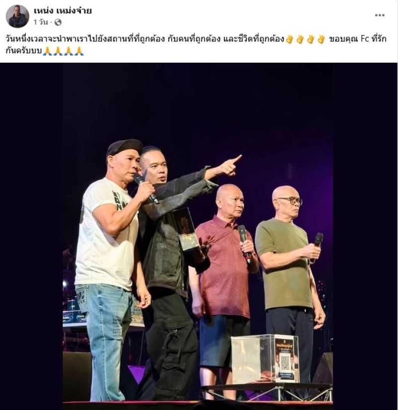 ล่าสุด ชาวเน็ตจับตาอีกครั้ง เมื่อทาง เหน่ง เหม่งจ๋าย ได้โพสต์ว่า วันหนึ่งเวลาจะนำพาเราไปยังสถานที่ที่ถูกต้อง กับคนที่ถูกต้อง และชีวิตที่ถูกต้อง ขอบคุณ Fc ที่รักกันครับบบ ซึ่งในภาพนั้น มี หม่ำ-โหน่ง-เทพ โพธิ์งาม และ เหน่ง เหม่งจ๋าย อยู่บนเวทีด้วยกัน