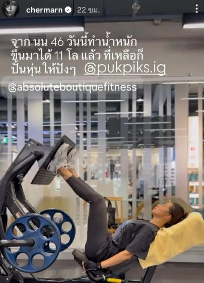 โดย เจ้าตัว ยังอัปเดตข่าวดีว่า น้ำหนักเพิ่มขึ้นจากเดิมแล้วถึง 11 กิโลกรัม และกำลังโฟกัสขั้นต่อไป คือ การเสริมสร้างรูปลักษณ์ให้แข็งแรง และสมดุล