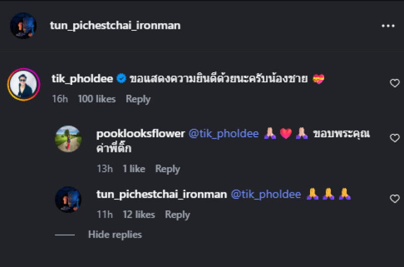 จากกรณีที่ก่อนหน้านั้น ได้มีภาพของ ตั้น พิเชษฐ์ไชย ผลดี น้องชายของพระเอก ติ๊ก เจษฎาภรณ์ ได้ออกมาโพสต์ภาพงานเเต่งคู่กับแฟนสาวที่เพิ่งเปิดตัวแฟนสาว อย่าง ปุ๊กลุก ไปเมื่อช่วงเดือนกันยายนที่ผ่านมา โดยทั้งคู่นั่งควงแขนกัน และแต่งตัวสวยหล่อ ท่ามกลางแฟนๆเเละคนในวงการเข้ามาคอมเมนต์แสดงความยินดีกันอย่างมากมาย