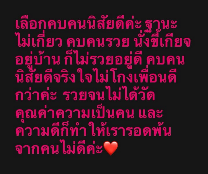 คบคนนิสัยดีจริงใจไม่โกงเพื่อนดีกว่าค่ะ รวยจนไม่ได้วัดคุณค่าความเป็นคน และความดีก็ทำให้เรารอดพ้นจากคนไม่ดีค่ะ ชั้นคิดแบบนี้ค่ะ ชีวิตอีชั้นก็สุขใจดีนะคะ โดยมีคนในวงการต่างคอมเมนต์เห็นด้วยกันอย่างมาก