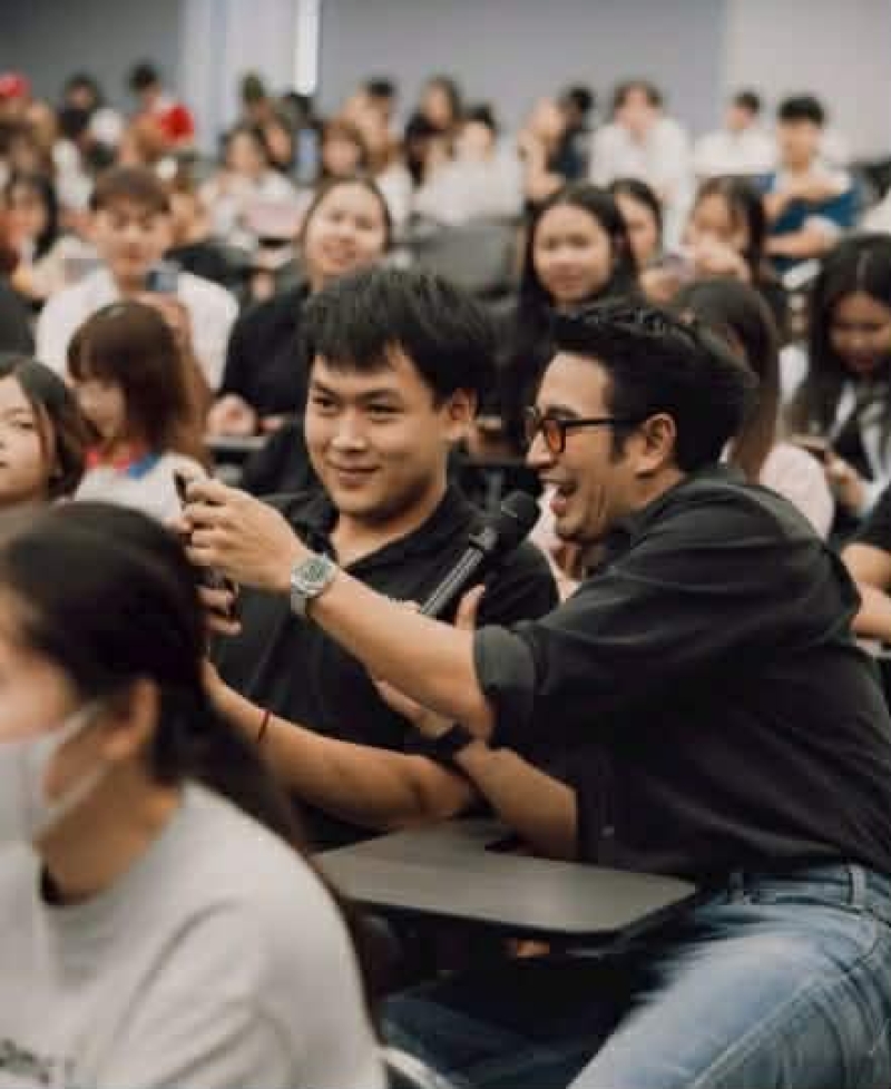 บุคคลนั้น คือ เกรท วรินทร พระเอกแถวหน้าจากช่อง 3 ที่ครั้งนี้ ขอสลับบทบาทจากนักแสดง มาแบ่งปันประสบการณ์ชีวิตให้กับนักศึกษาอย่างใกล้ชิด