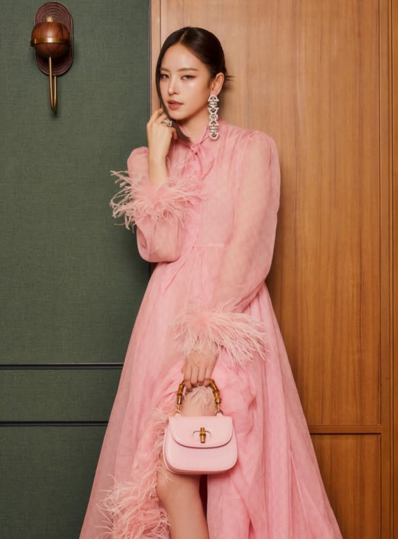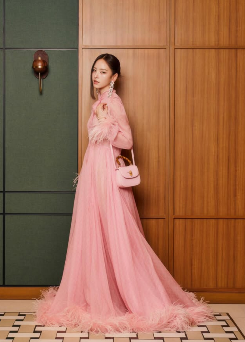 โดย ณิชา สวมชุดเดรสยาวสีชมพูหวานละมุน ดีไซน์เรียบหรูจากแบรนด์หรูระดับโลกอย่าง Gucci ท่ามกลางแฟนๆเเละคนในวงการต่างตะลึงกันอย่างมาก