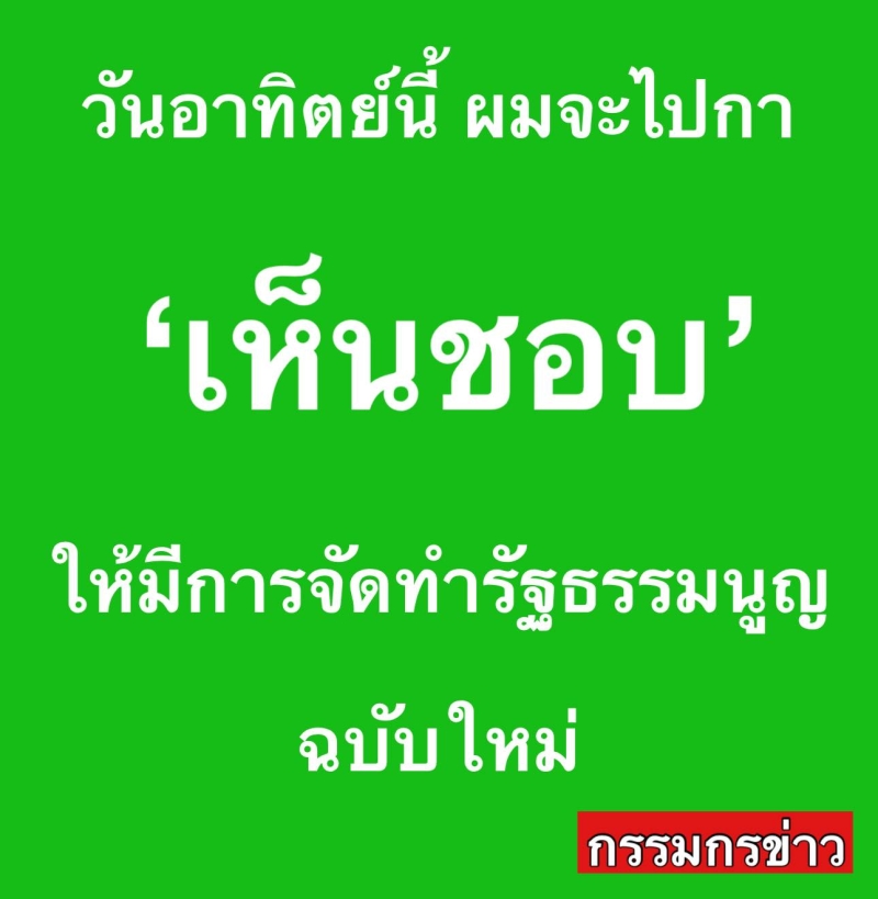 ระบุว่า วันอาทิตย์นี้ ผมจะไปกา เห็นชอบ ให้มีการจัดทำรัฐธรรมนูญ ฉบับใหม่ ท่ามกลางแฟนๆต่างเข้ามาคอมเมนต์แสดงความคิดเห็นกันอย่างมาก