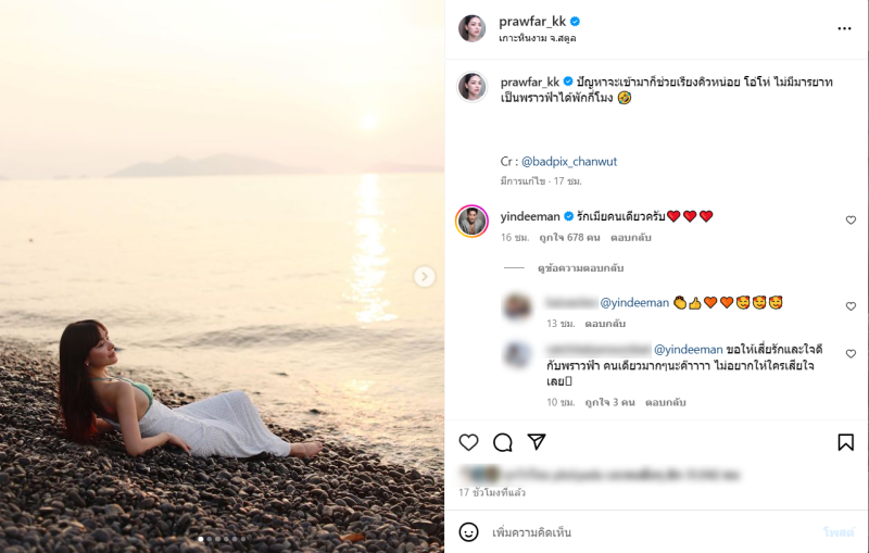จากกรณีที่ก่อนหน้านั้น ด้านดาราสาว อย่าง พราวฟ้า การัญชิดาที่ได้โพสต์ถึงสามี เสี่ยโบ๊ท ณัฐเดช โปรโมเตอร์มวยชื่อดังของเมืองไทย จนทำให้แฟนๆสงสัยว่าทั้งคู่เป็นอะไรกันหรือเปล่า โดยพราวฟ้า ได้แชร์ข้อความผ่านสตอรี่ว่า พรข้อสุดท้ายที่อยากขอ คือ ขอให้ตัวฉันอย่าเสียใจ เพราะใครอีกเลย