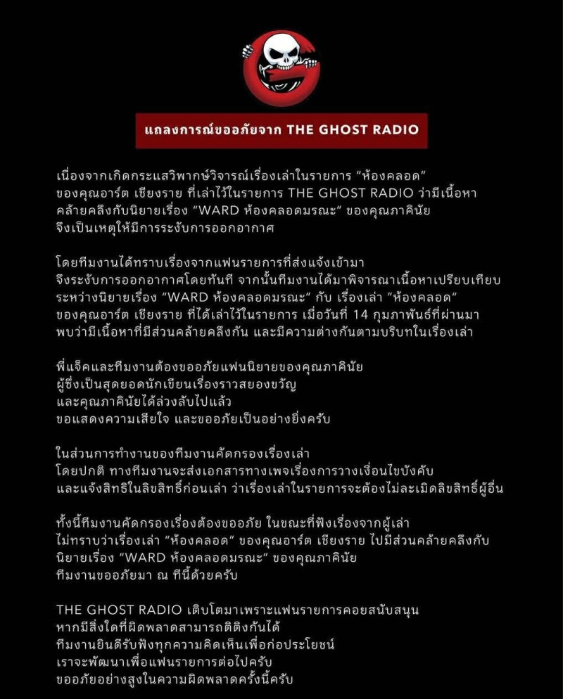 เรียกได้ว่า กลายเป็นประเด็นร้อนในหมู่แฟนรายการสายหลอนทันที สำหรับ The Ghost Radio หลังมีผู้โทรเข้ามาเล่าเหตุการณ์ชวนขนลุกในตอนชื่อ ห้องคลอด แต่กลับถูกตั้งข้อสังเกตว่า เนื้อหาอาจไม่ใช่ประสบการณ์จริง