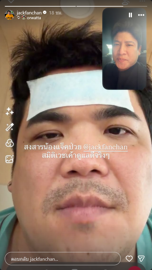 ทำเอาแฟนๆต่างเป็นห่วงเเละส่งกำลังใจกันอย่างมากเมื่อล่าสุดนักแสดงหนุ่ม แจ็ค แฟนฉัน มีภาพแอดมิทนอนให้น้ำเกลือบนเตียง หลังเจอพิษสภาพอากาศแปรปรวน โดยโพสต์ภาพผ่านสตอรี่อินสตาแกรมพร้อมสายวัดความดันและแผ่นคูลฟีเวอร์แปะหน้าผากลดไข้