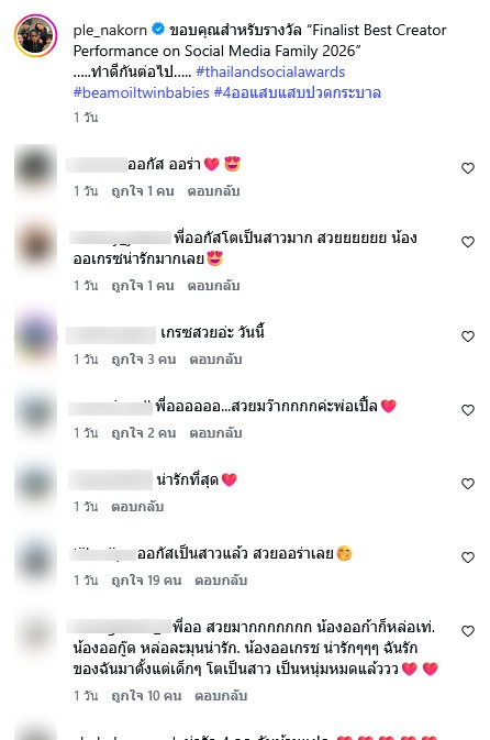 ยิ่งโตยิ่งสวยหล่อสำหรับลูกๆของ เปิ้ล นาคร และ จูน กษมา ที่ล่าสุดได้พาครอบครัวออกงานแบบพร้อมหน้าพร้อมตา พากันแต่งหน้าทำผมสวยหล่อทั้งบ้าน โดยทางด้านคุณพ่อได้ออกมาโพสต์ภาพครอบครัว หลังคว้ารางวัล Finalist Best Creator Performance on Social Media Family 2026