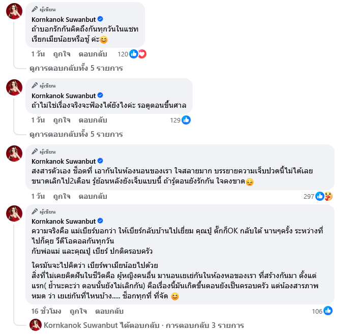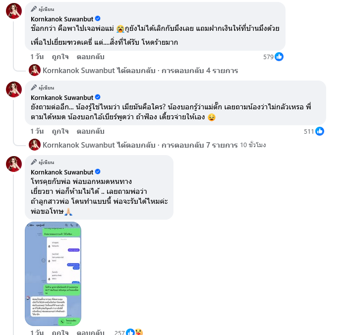 กลายเป็นมหากาพย์ดราม่าสนั่นสำหรับ แม่ตั๊ก กรกนก สุวรรณบุตร และ ป๋าเบียร์ กานต์พล ล่าสุด แม่ตั๊ก ได้ออกมาโพสต์เดือดว่า วันนี้มี1ในเมียน้อยของไอ้xxนั้นมาสารภาพบาป ถึงบ้านตั๊ก และน้องก็เล่าให้ฟังทั้งหมด ว่าเอากันที่ไหนบ้างแต่ที่