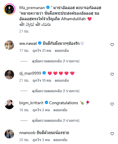 โดยเขียนแคปชั่นนสั้นๆว่า มาชาอัลลอฮ ตะบารอกัลลอฮ หมายความว่า นั่นคือพระประสงค์ของอัลลอฮฺ ขออัลลอฮฺทรงให้จำเริญเถิด Alhamdulillah