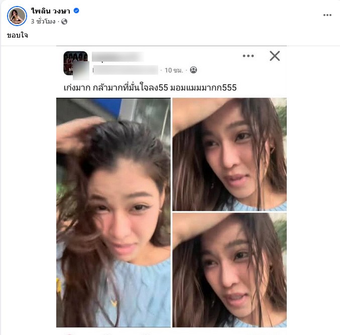 งานนี้ แบม ไพลิน สวนกลับเบาๆว่า ขอบใจ ท่ามกลางแฟนๆต่างเข้ามาคอมเมนต์ส่งกำลังใจกันอย่างมาก