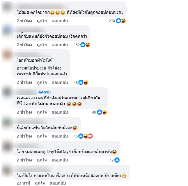 Day2 กลับมาอยู่บ้าน บอกตัวเองต้องอยู่ให้ได้ ต่อให้ไม่มีเขา และ Day3 เป็นคลิปซับน้ำตา Day4 เป็นคลิปนอนกอดลูกชาย พร้อมทิ้งท้ายไว้ว่า ไม่ว่าจะอกหักใาจากไหน ก็ยังมีลูกผัวปลอบใจอยู่ข้างๆ