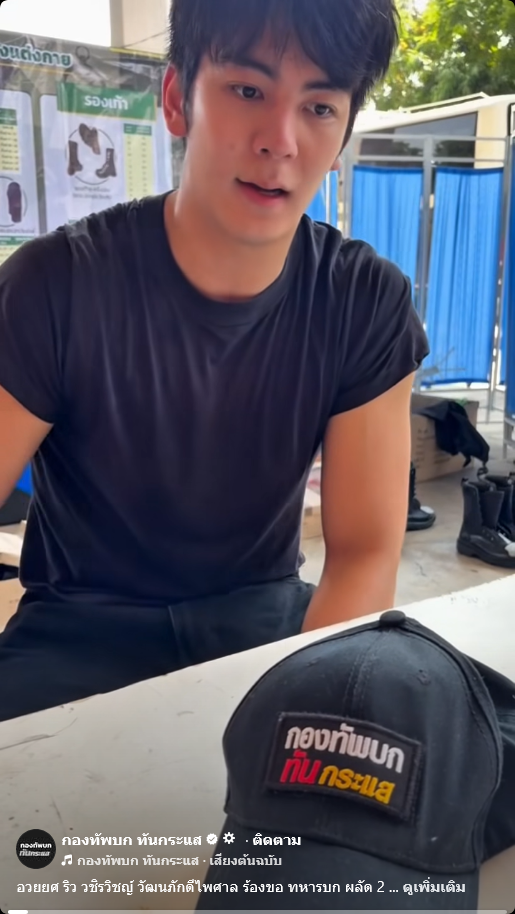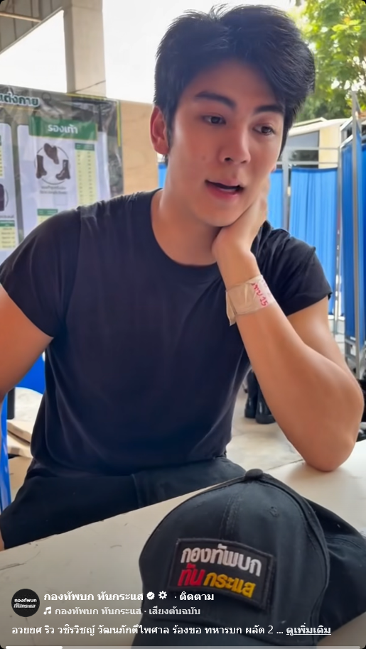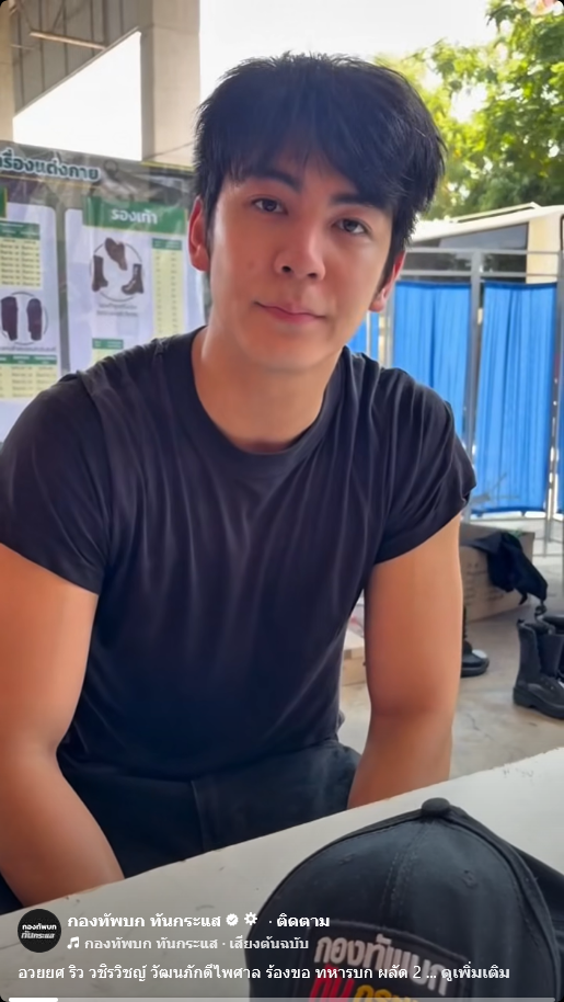 ถือว่าเป็นเรื่องน่ายินดีเมื่อพระเอกดัง ริว วชิรวิชญ์ ทิ้งลุคพระเอกสุดละมุน สมัครเข้ารับราชการทหารกองประจำการด้วยตัวเอง โดยเพจ กองทัพบก ทันกระแส เผยคำสัมภาษณ์ ริว ว่า วันนี้มาร้องขอให้ ยื่นวุฒิ ป.ตรี เหลือ 6 เดือน ริวคุยกับทางพ่อแม่