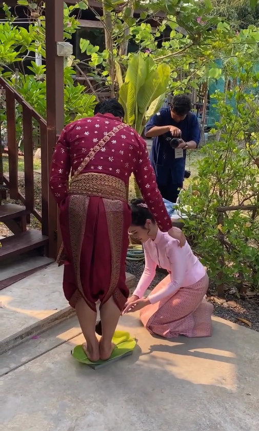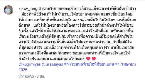 แล้วใช้ผ้าเช็ดให้สะอาดหมดจดแล้วจึงเดินถือพานขันหมากขึ้นเรือนพร้อมจะเข้าสู่พิธีหมั้นกับเจ้าสาวเพื่อความเป็นสิริมงคล ให้สำเร็จในความรัก ให้งดงามหวานชื่น มั่นคงสืบไปตราบนานเท่านาน วันนี้แม่ดีใจที่สุดของหัวใจ และเชื่อว่าทุกท่านที่รักเอ็นดูเมตตา NY มาเป็นเวลาอันยาวนานคงดีใจที่สุดเช่นกันนะคะ ขอบคุณทุกท่านที่เป็นแรงใจและให้กำลังใจกันตลอดมาและตลอดไปนะคะ #NYเขยนอร์เวย์สะใภ้ขอนแก่น