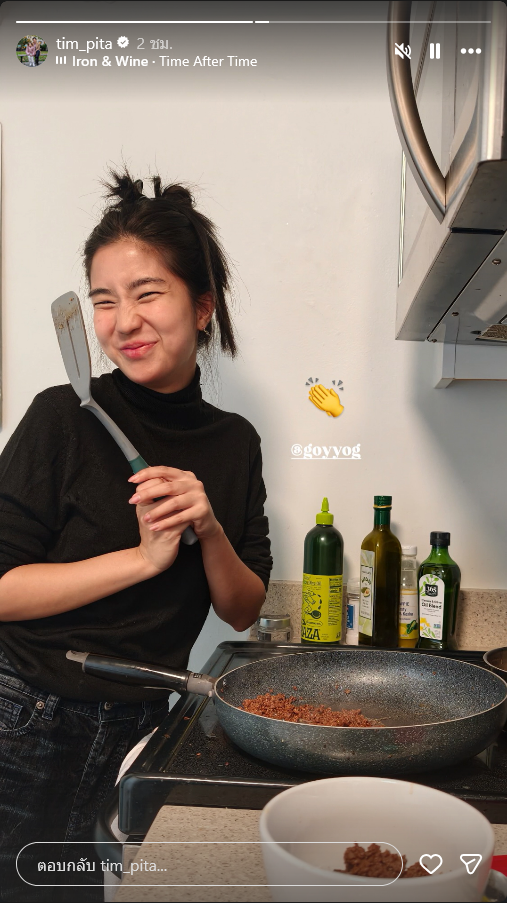 โดย ทิม พิธา ยังได้โพสต์สตอรี่ไอจีขณะที่ ก้อย กำลังเข้าครัวทำอาหารสวมบทบาทเป็นแม่ครัวหัวป่าก์ทำอาหารให้แฟนกิน บอกเลยว่างานนี้โดนแซวกันสนั่น