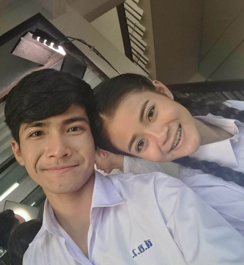 ภาพดังกล่าวเป็นช็อตย้อนวัยสมัยเรียน ที่ทั้งคู่มาในชุดนักเรียน ยืนถ่ายรูปคู่กันแบบใสๆ ดูสนิทสนมเกินเพื่อน จนหลายคนถึงกับเซอร์ไพรส์