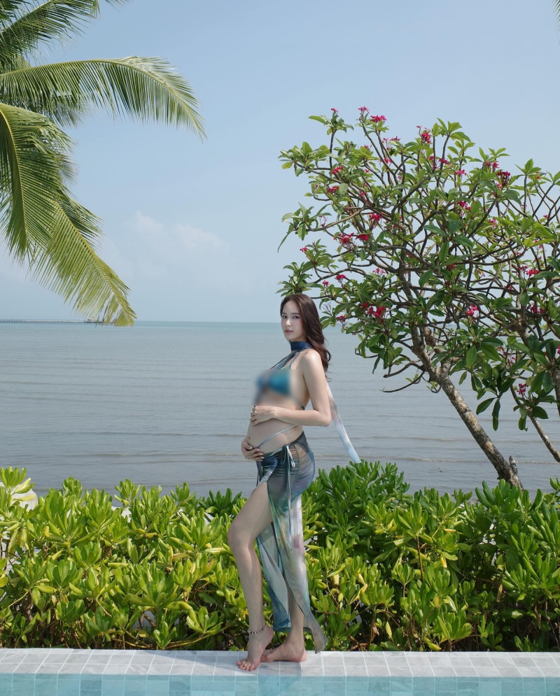 ล่าสุด ใบหม่อน ได้พาลูกในท้องไปพักผ่อนอยู่ริมทะเล พร้อมแคปชั่นแซวตัวเองไว้ว่า "เป็นเมอร์เมดหรือม้าน้ำดี"