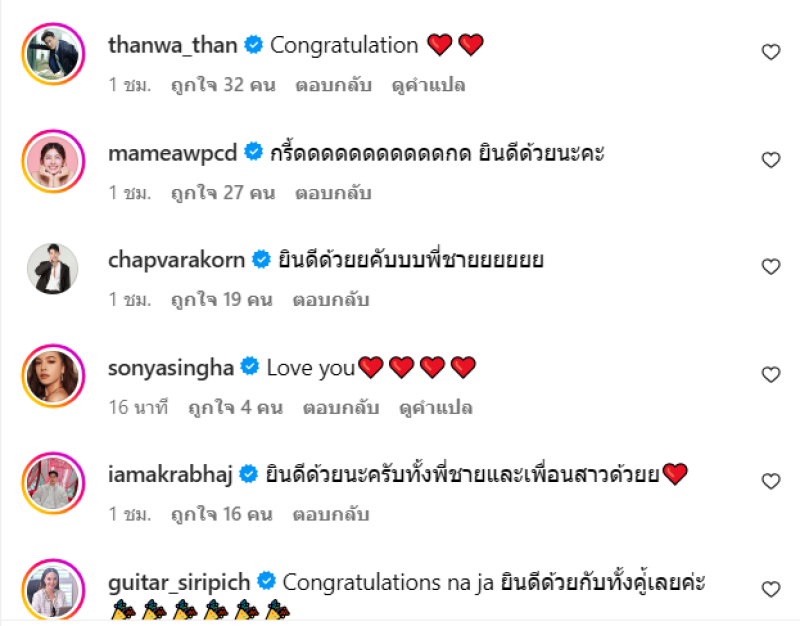 ท่ามกลาง เหล่าดาราเข้ามาแสดงความยินดีกันจำนวนมา