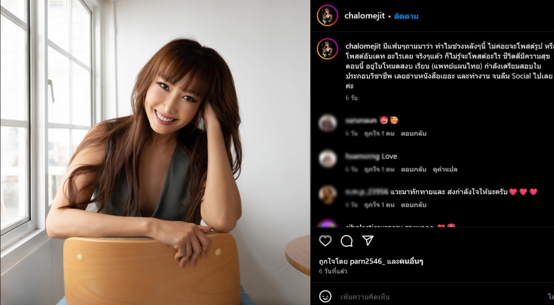 ล่าสุด ลูกตาล ได้ออกมาอัปเดตทางอินสตาแกรมส่วนตัวว่า มีแฟนๆถามมาว่า ทำไมช่วงหลังๆนี้ ไม่ค่อยจะโพสต์รูป หรือโพสต์อับเดท อะไรเลย จริงๆแล้ว ก็ไม่รู้จะโพสต์อะไร ชีวิตดีมีความสุข ตอนนี้ อยู่ในโหมดสงบ เรียน (แพทย์แผนไทย) กำลังเตรียมสอบใบประกอบวิชาชีพ เลยอ่านหนังสือเยอะ และทำงาน จนลืม Social ไปเลยค่ะ ..